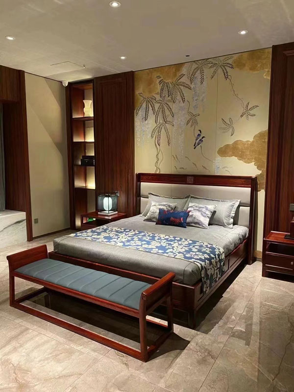新中式在取材的范圍上更廣闊的,壁紙、背景墻等都可以作為主要裝飾物,而出現(xiàn)的一兩件木質(zhì)家具則讓新中式家居更有一番韻味。